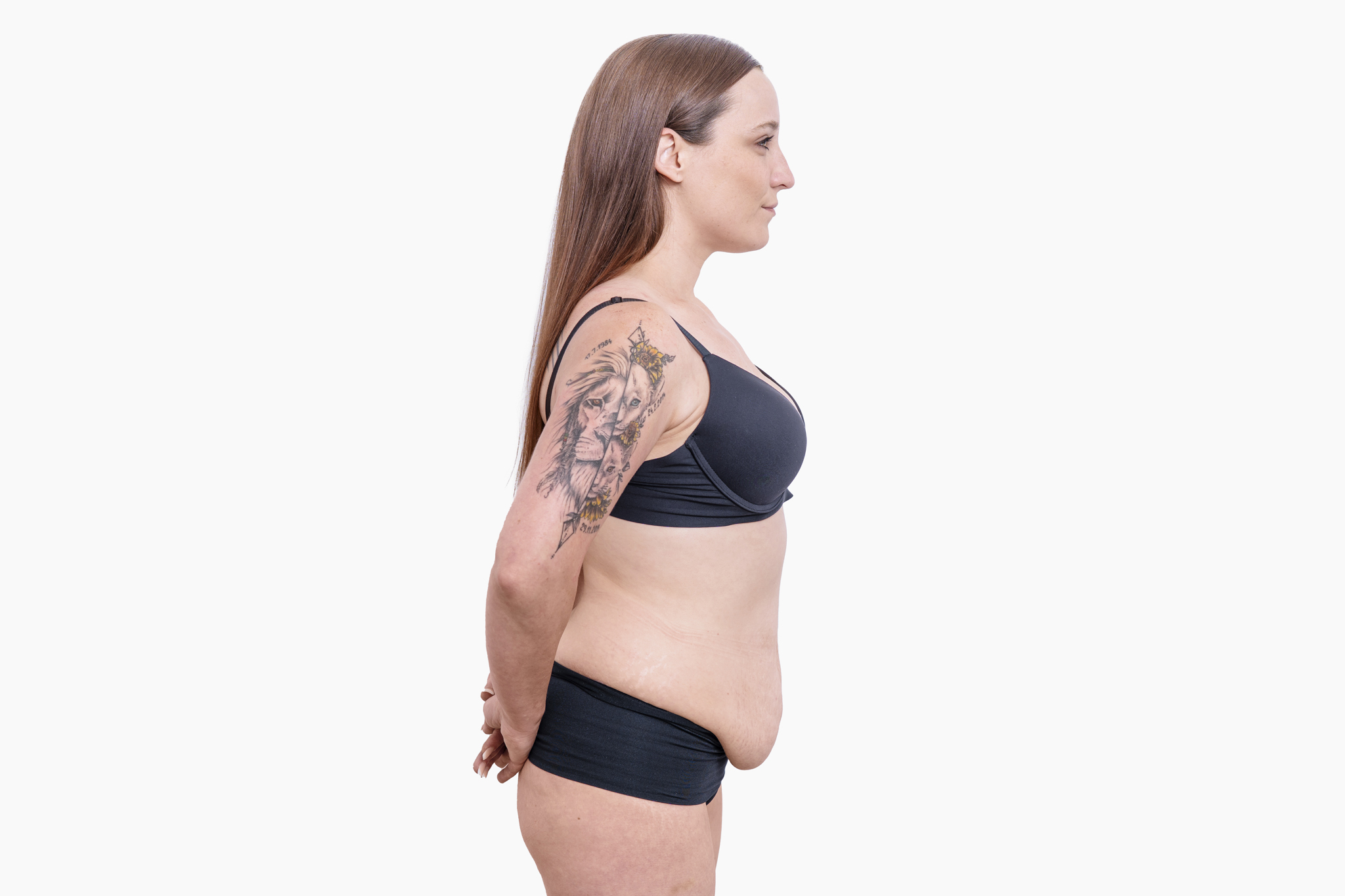 Paní Laura přišla s poměrně častým problémem, který se vyskytuje u klientek po porodu nebo velkém úbytku váhy. Během zákroku jsme odstranili nadbytečné tkáně v dolní části břicha, takzvaný převis, lépe definovali konturu boků a korigovali diastázu plastikou přímého břišního svalu. Pro dokonalý a přirozený efekt jsme na závěr vyšili pupeční jizvu do správné pozice. Výsledek je dle mého vynikající – břicho vypadá štíhlejší, plošší a klientce už především nic nepřekáží. Může si konečně užívat oblíbené aktivity i dobrý pocit ze sebe samé.